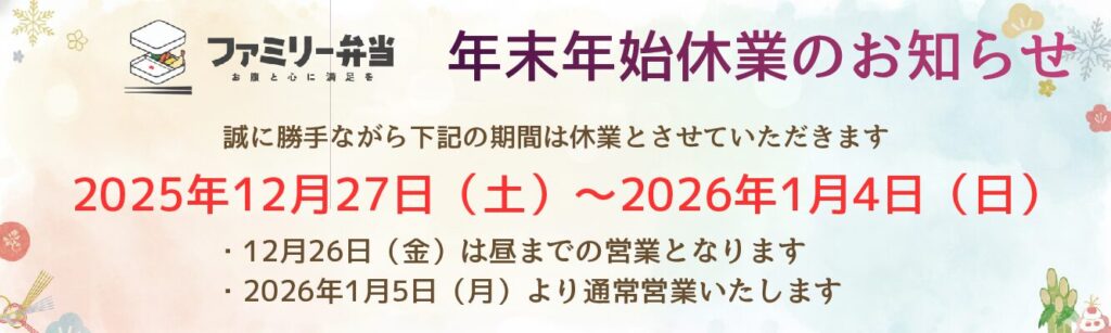 2025年12月27日(土)〜2026年1月4日(日)は休業とさせてい 「続きを読む」