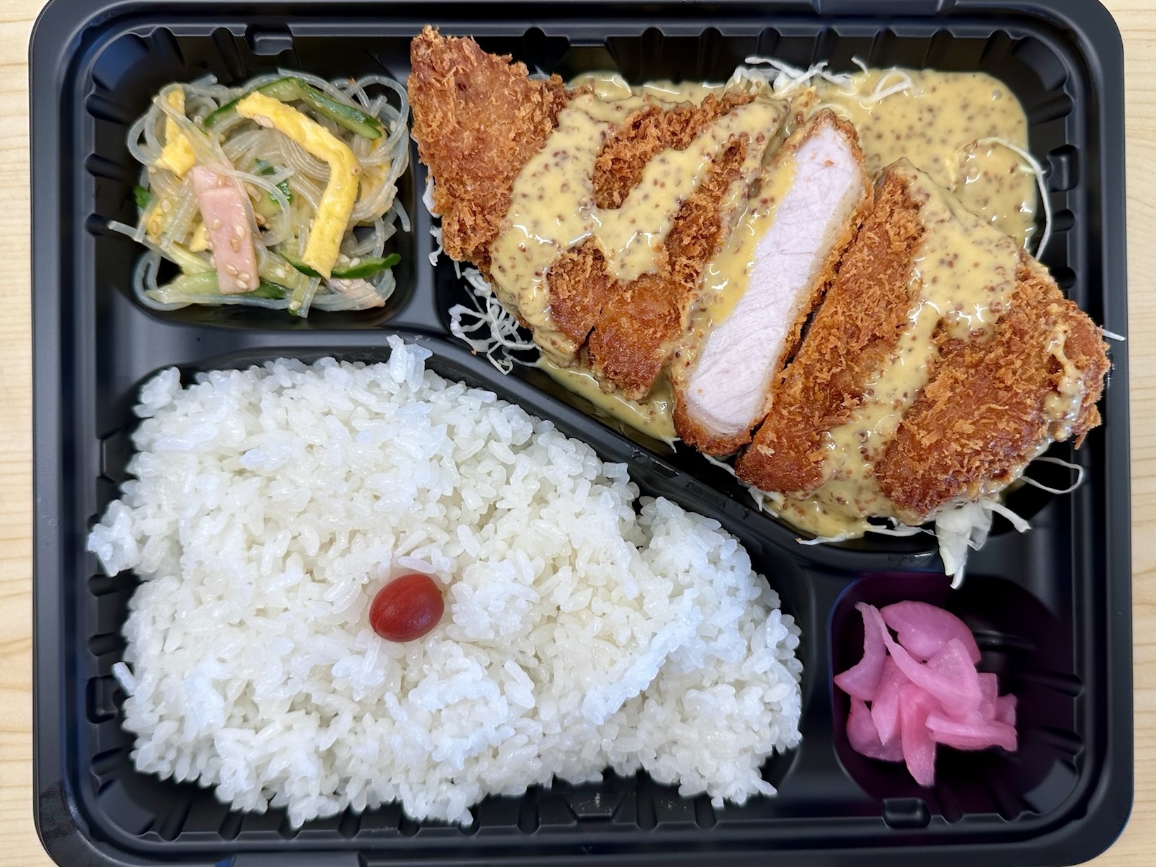 とんかつマスタード弁当 ¥850 とんかつマスタード弁当個 お買い物カゴに追加 カテゴリー: 弁当 説明 説明 人気のマスタードソースをとんかつにからめてどうぞ 関連商品 マスタードチキン弁当 ¥690 お買い物カゴに追加 唐揚げ弁当 ¥660 お買い物カゴに追加 おてごろアジフライ弁当 ¥570 お買い物カゴに追加 740円日替わり弁当 ¥740 お買い物カゴに追加